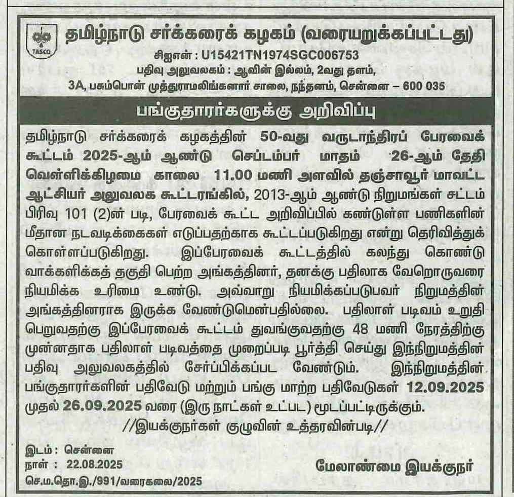 Thiru. T.ANBALAGAN IAS , has assumed the office of Managing Director on 17.06.2024 FN